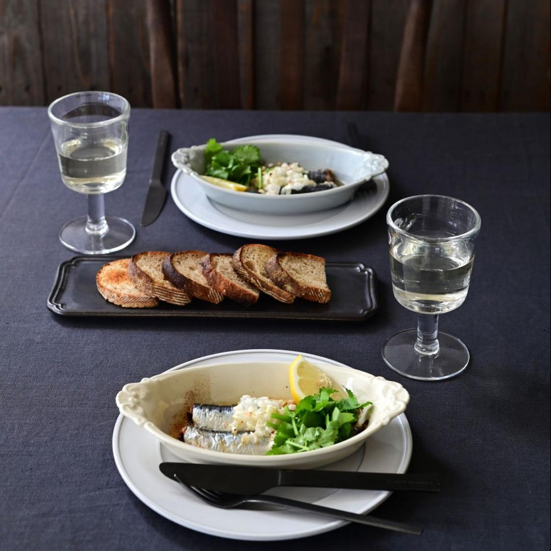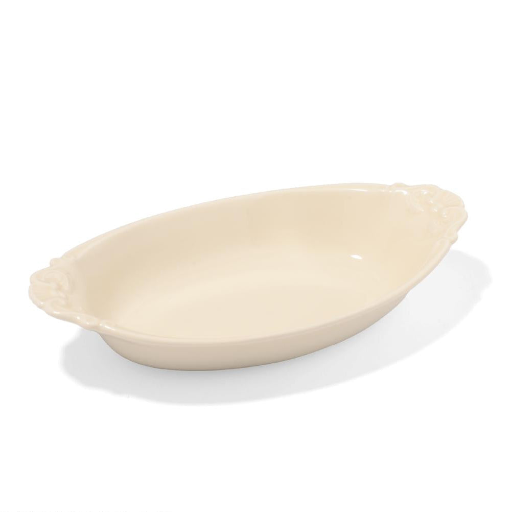 Ovenware with traditional acanthus motifs loved through generations in Europe. Perfect for enjoying natural goodness of ingredients like grilled seasonal vegetables and baked dishes. Stylish ovenware made for everyday use. There's faintly designed patterns on the back to show lively figure of acanthus.